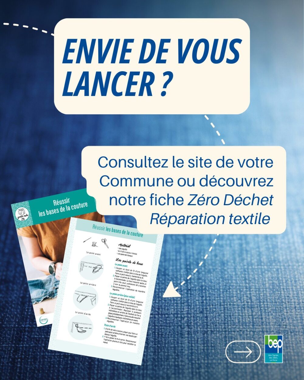 Pour ceux qui souhaitent s’exercer à la maison, BEP Environnement met à votre disposition des fiches conseils « Zéro Déchet » dédiées à la couture. Elles vous guideront pas à pas pour réussir vos réparations les plus courantes.