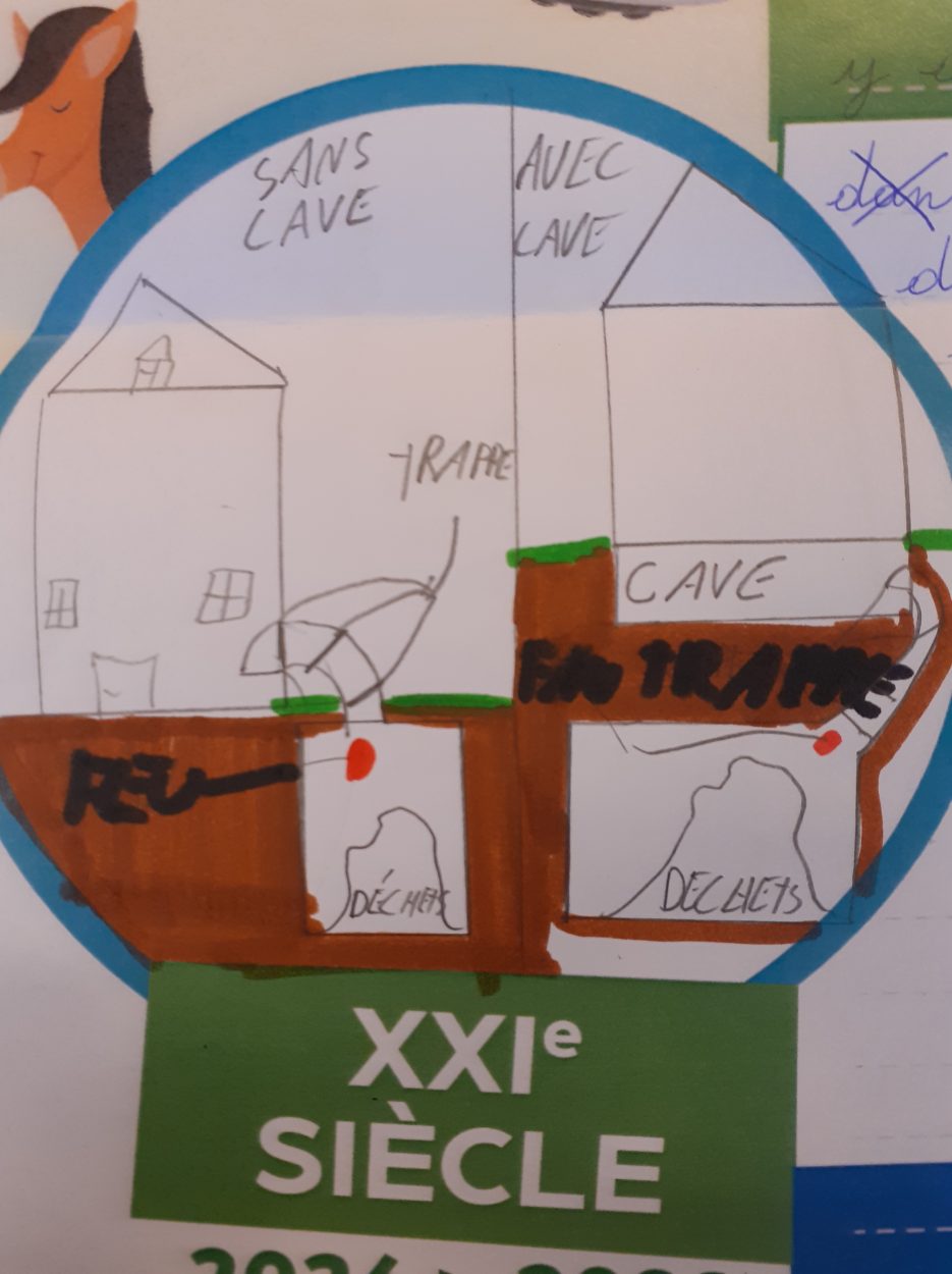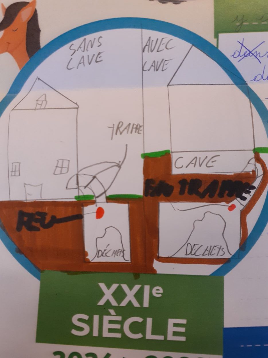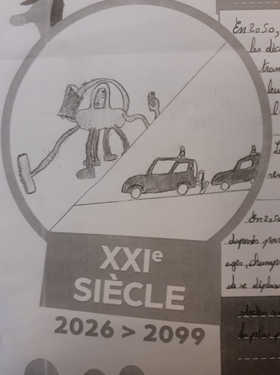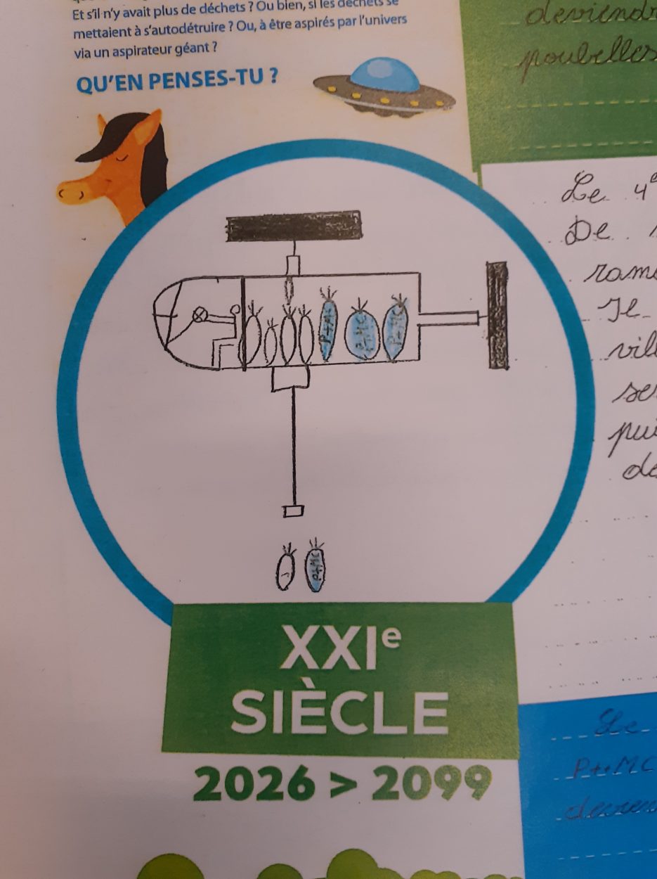 Plein d’idées originales et ludiques sont sorties des productions des enfants: robots trieurs, pigeons ramasseurs de déchets, voitures roulant grâce aux déchets ramassés, loi zéro déchet appliquée à tous les magasins, loi qui favorise les déchets biodégradables, poubelles de tri souterraines, déchets envoyés et détruits dans l’espace, de drônes qui détectent et trient les déchets dans les bonnes poubelles…