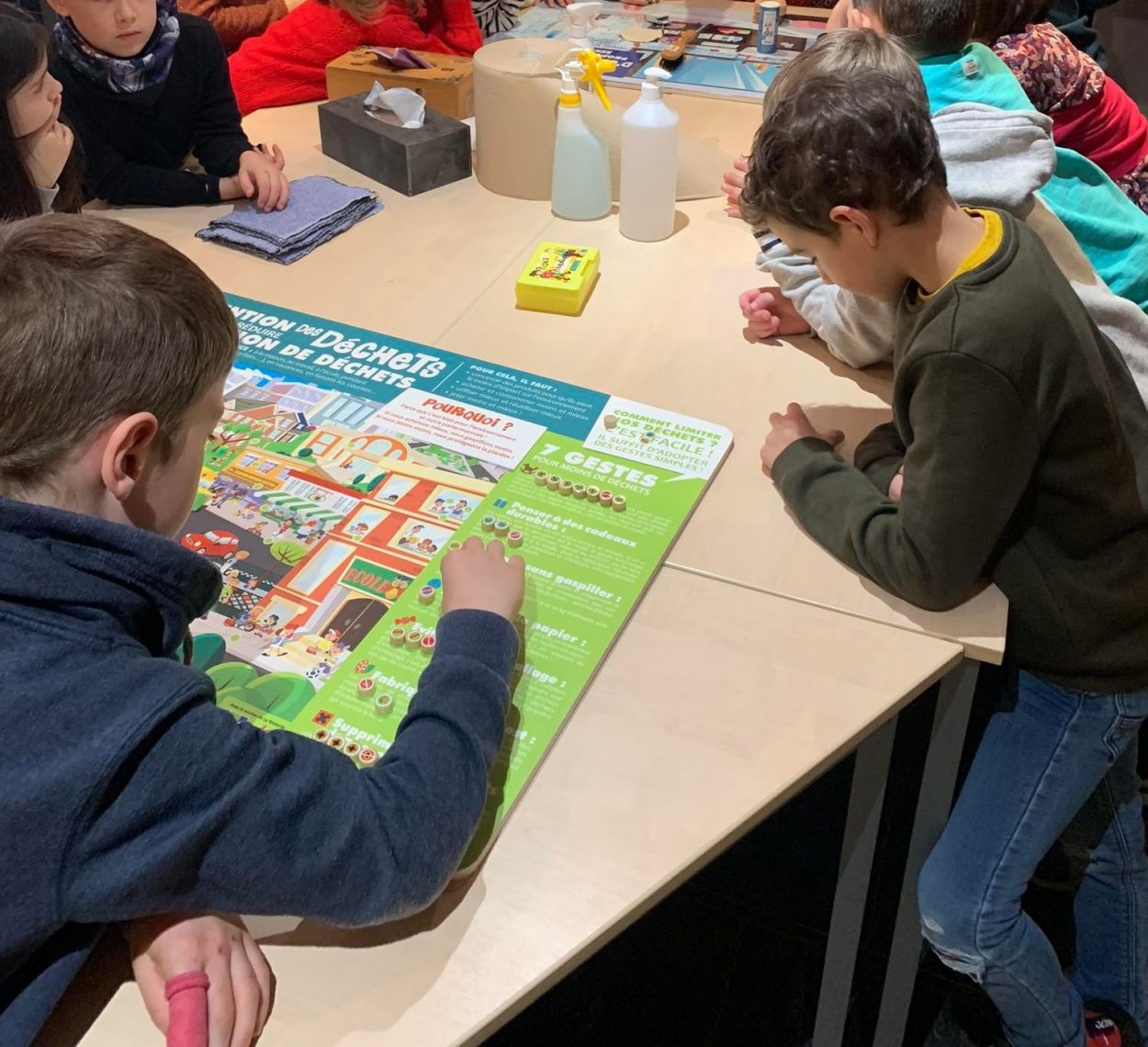 La visite de l’exposition était suivie par des animations diverses, sur la prévention des déchets et les alternatives zéro déchet. Plusieurs plateaux de jeux ont été proposés aux enfants pour les conscientiser et leur donner envie de mettre en place au moins 1 geste dans leur classe et 1 geste à la maison.