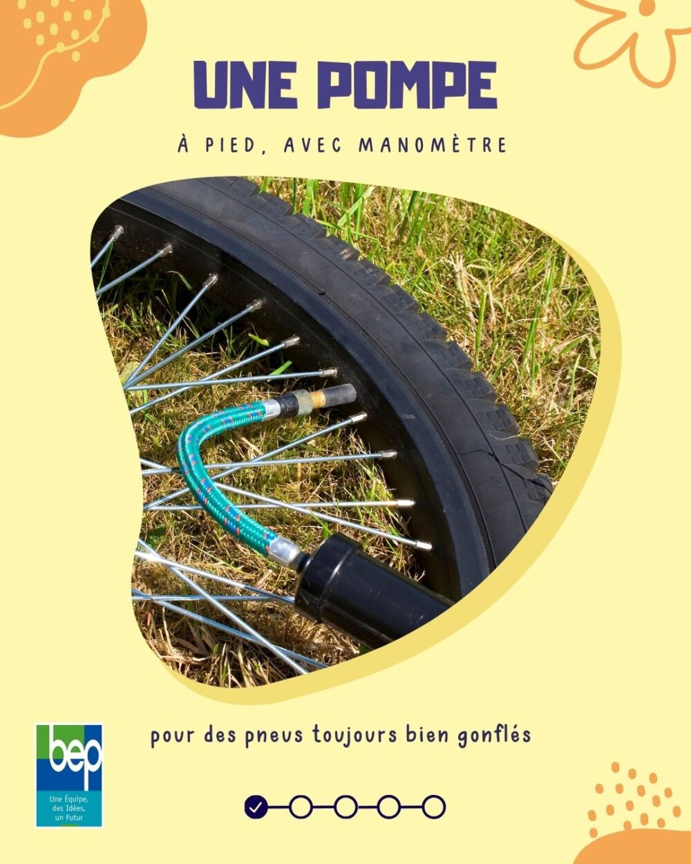 - Pompe à pied avec manomètre – Pour des pneus toujours bien gonflés.
