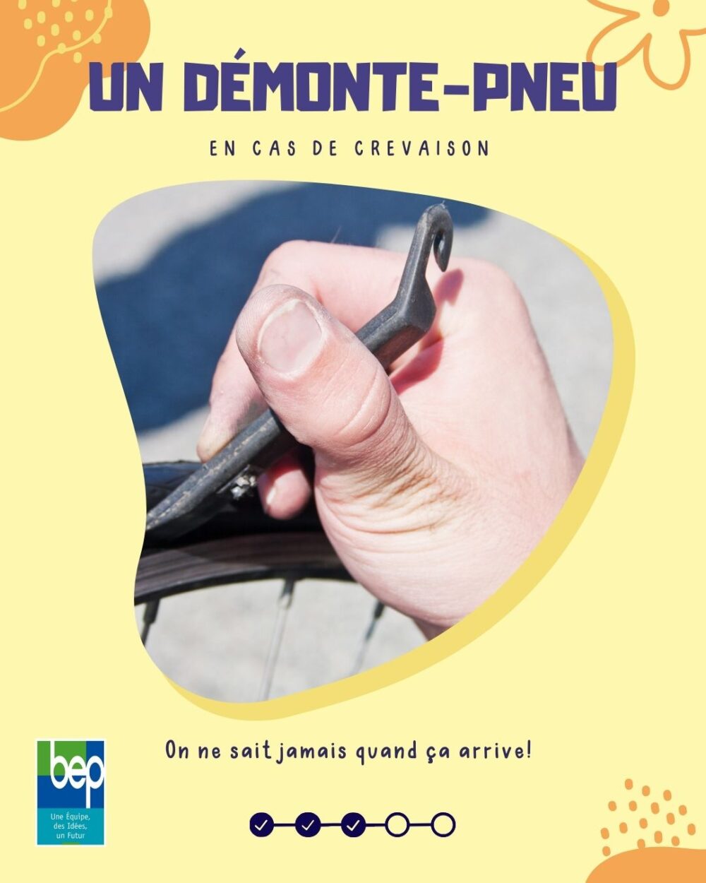 - Démonte-pneus – Parce qu’une crevaison, ça ne prévient pas.