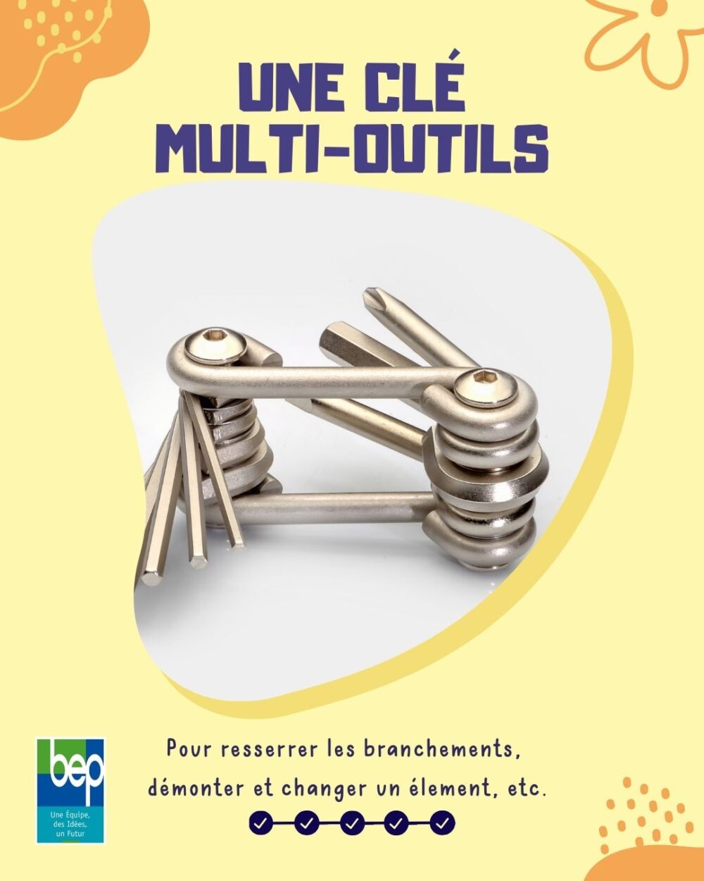 - Clé multi-outils vélo – Le couteau suisse version cycliste, avec clés Allen, Torx et tournevis.