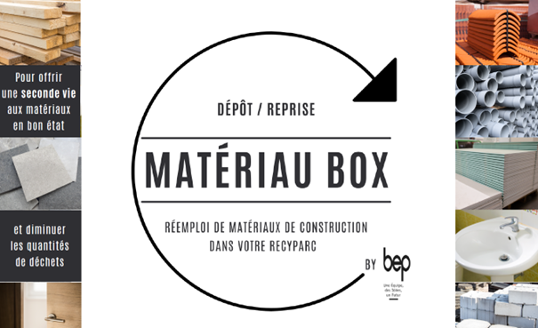 Désormais, des box palettes sont à votre disposition dans certains recyparcs (Beauraing, Ciney, Florennes, Hastière, Phillippeville) pour déposer ou récupérer gratuitement des matériaux de construction en bon état.